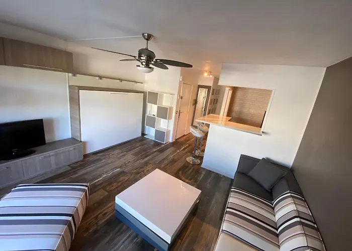 A 33 m²-es Tres Beau Studio Dans Residence Calme Avec 2 Piscines,Parking Prive Et Proche Des Commerces Et Plage Mandelieu kényelmes közelségben van olyan városi látnivalókhoz, mint a 6 percnyi gyalogútra található Geant Casino. Az 1 hálószobás apartman vendégei lazíthatnak a magán kertben.
